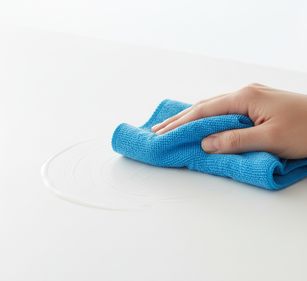 - Keine Wachse oder Polituren: HPL benötigt keine zusätzliche Versiegelung. Möbelpolituren hinterlassen lediglich einen klebrigen Film, der Staub anzieht und Schlieren verursacht.