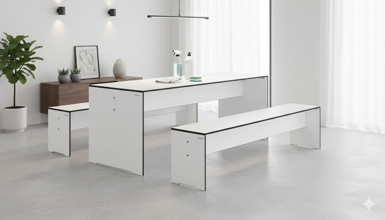 Damit Sie lange Freude an der Ästhetik und Funktionalität Ihrer HPL-Möbel haben, haben wir Ihnen hier die wichtigsten Tipps zur Reinigung und Werterhaltung zusammengefasst.