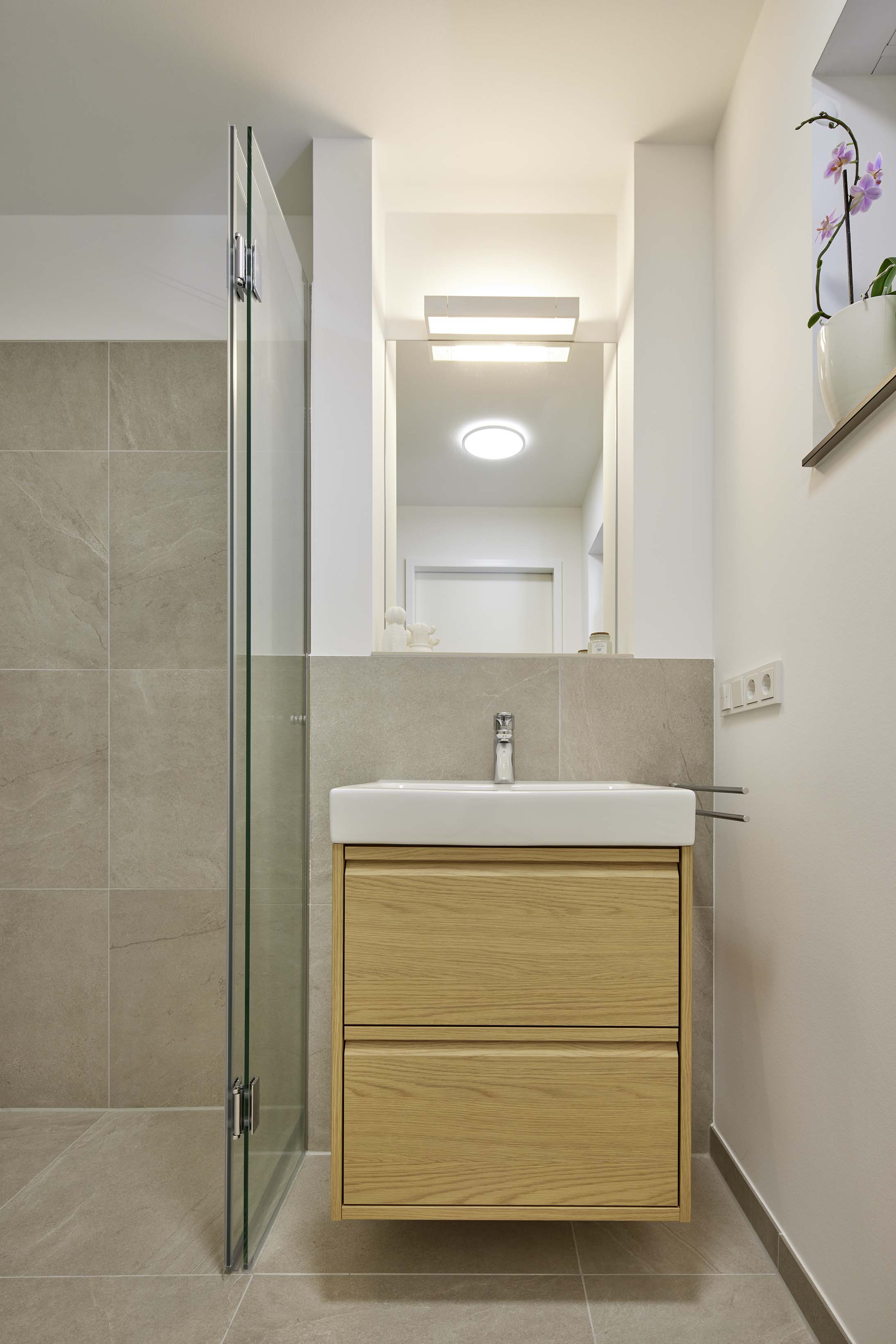 Von der Konzeptentwicklung über die baulichen Details bis hin zur Fertigung und Montage begleiteten wir das Projekt ganzheitlich. Neben der Möblierung planten und fertigten wir auch Fensterbänke, übernahmen Bodenarbeiten und stimmten technische Details eng mit dem Bauherrn ab.