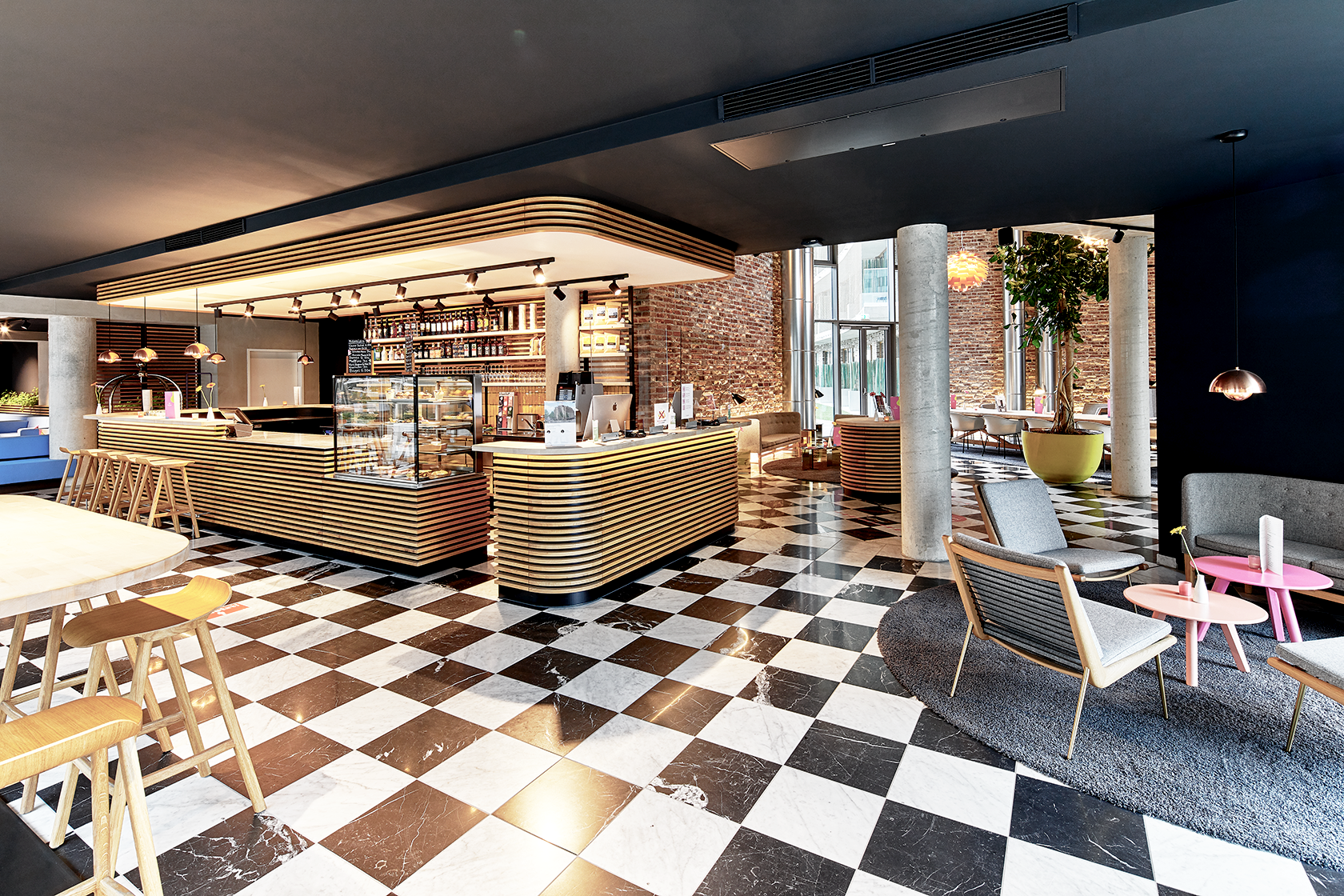 At the D'partments Hotel, we were not only able to furnish the rooms, but also the "Deli Lounge" on the ground floor of the building was part of the project.