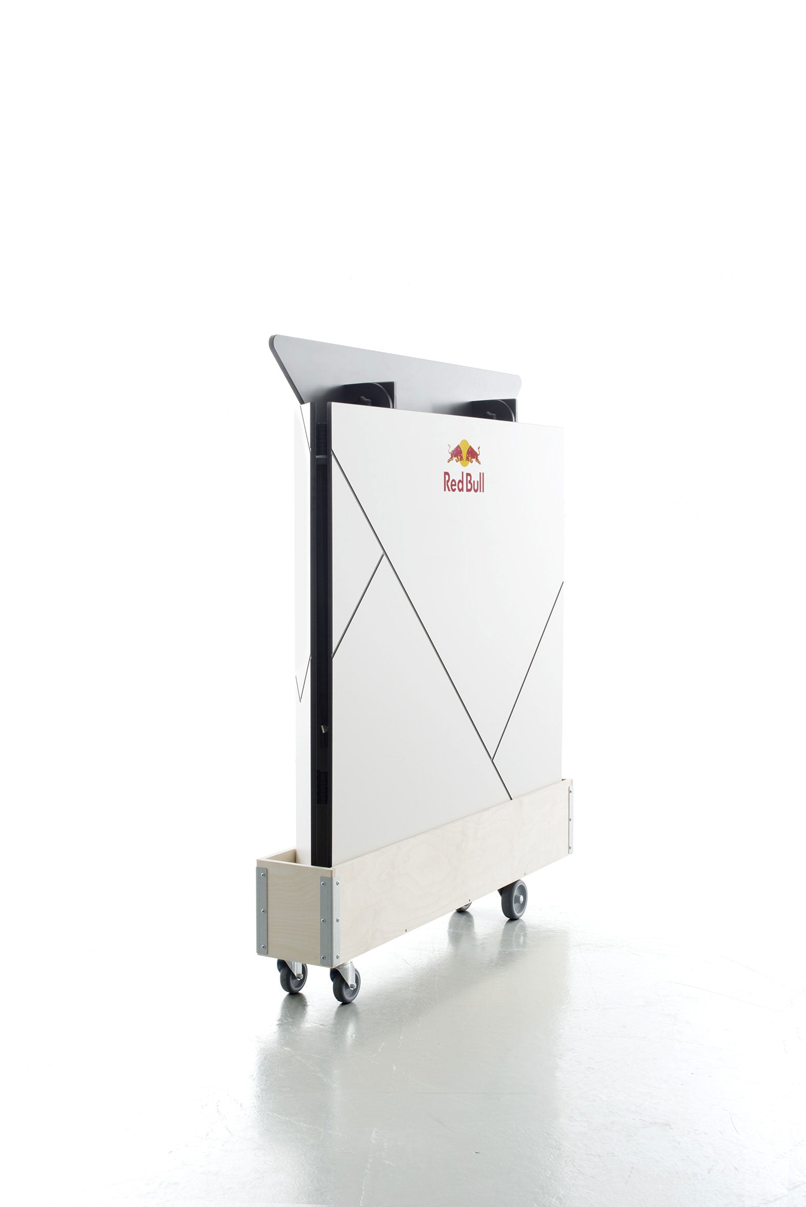 We designed the needs-optimized counter made of high-pressure laminate in a simple, stable form, enhanced by decorative grooves. The folding counter can be assembled in just a few seconds; no additional tools are required. There are also no loose components, keeping assembly simple and preventing any components from getting lost.