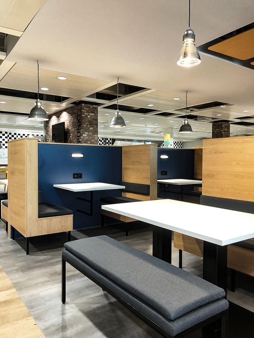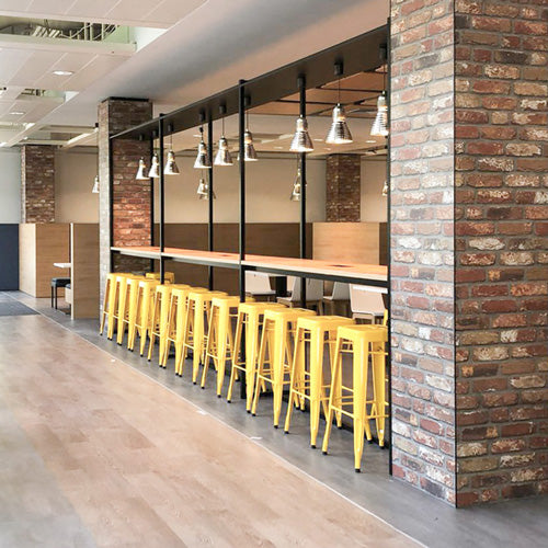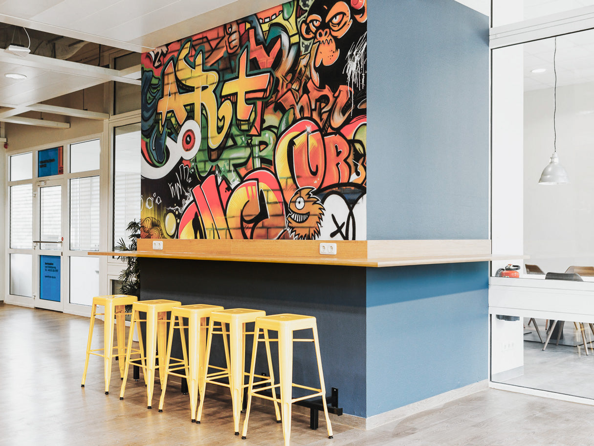 With striking urban-style graffiti and brick walls, we create an atmosphere that stands out from the traditional design. Our design carefully considers our clients' needs, and the Yellow Cafeteria exemplifies our ability to deliver tailor-made solutions.