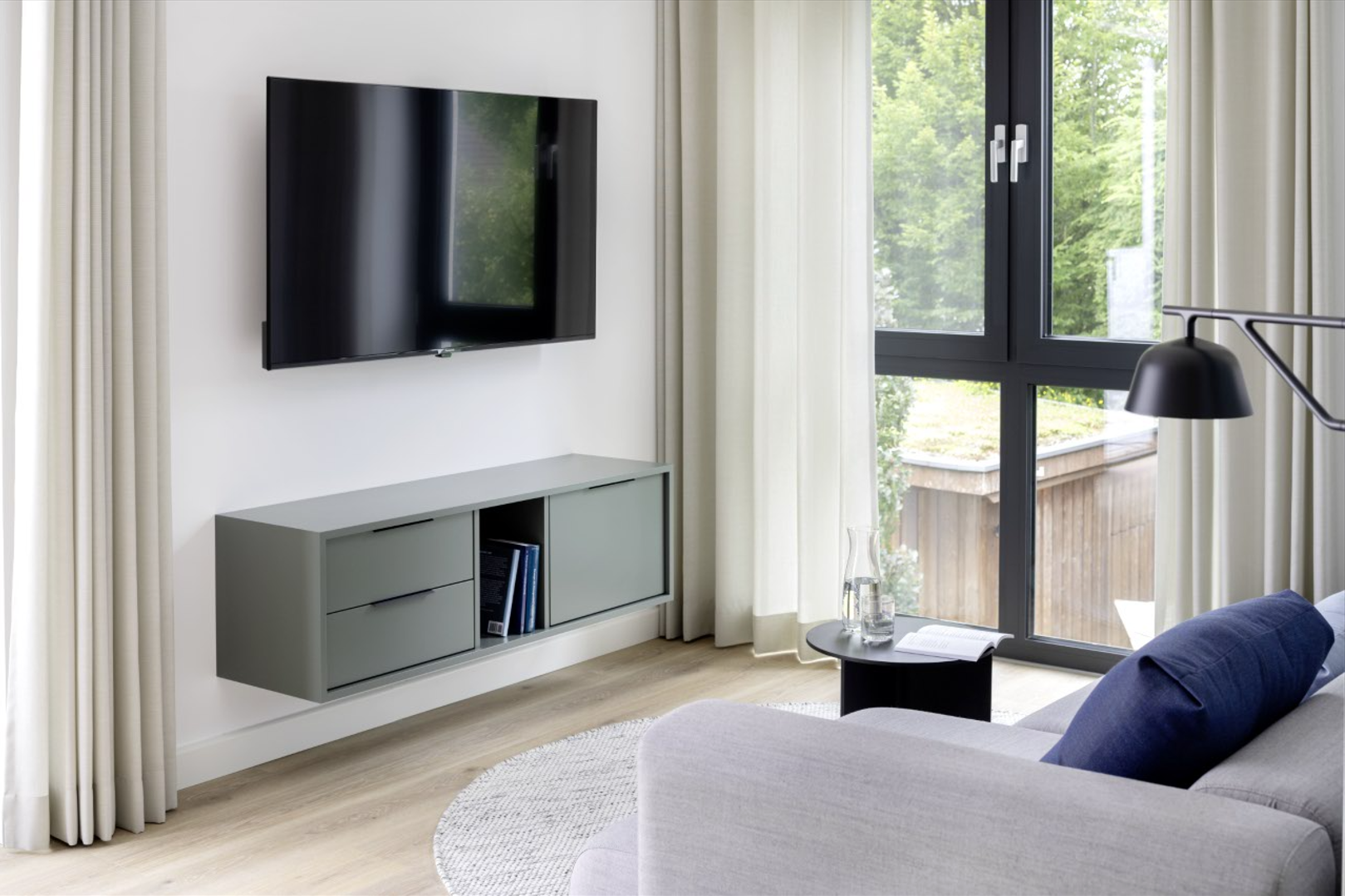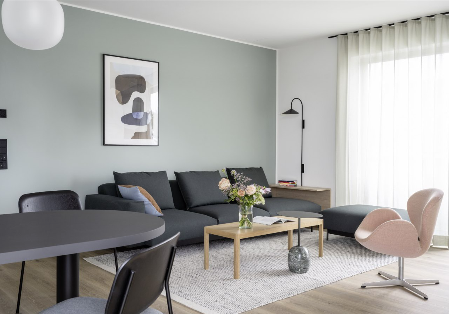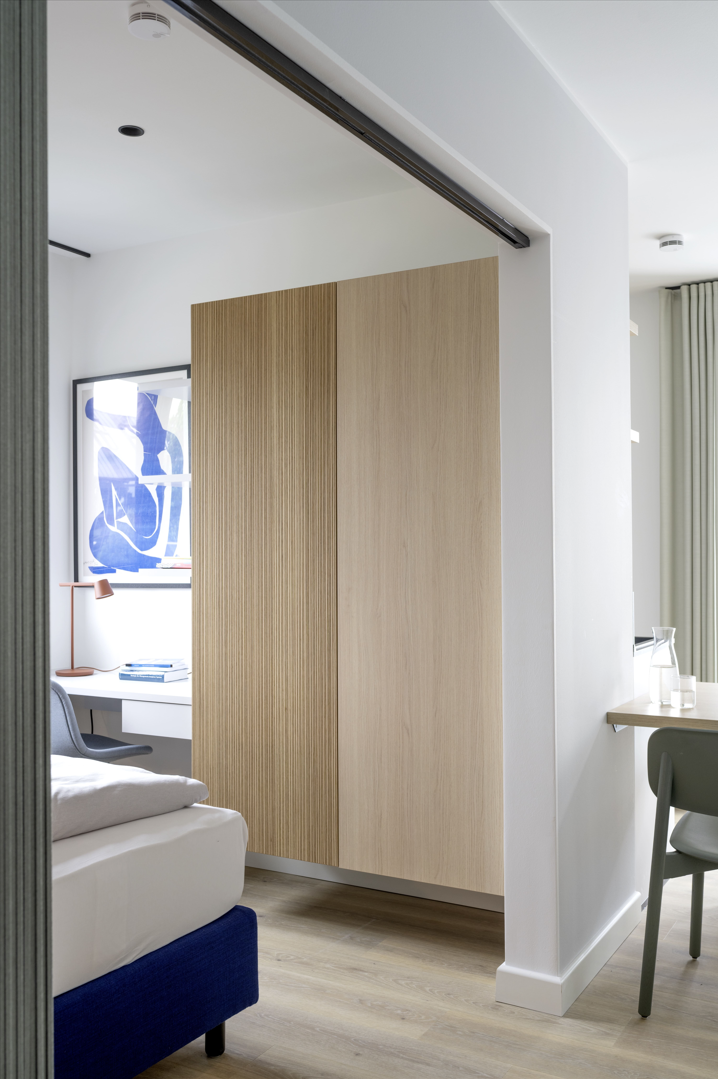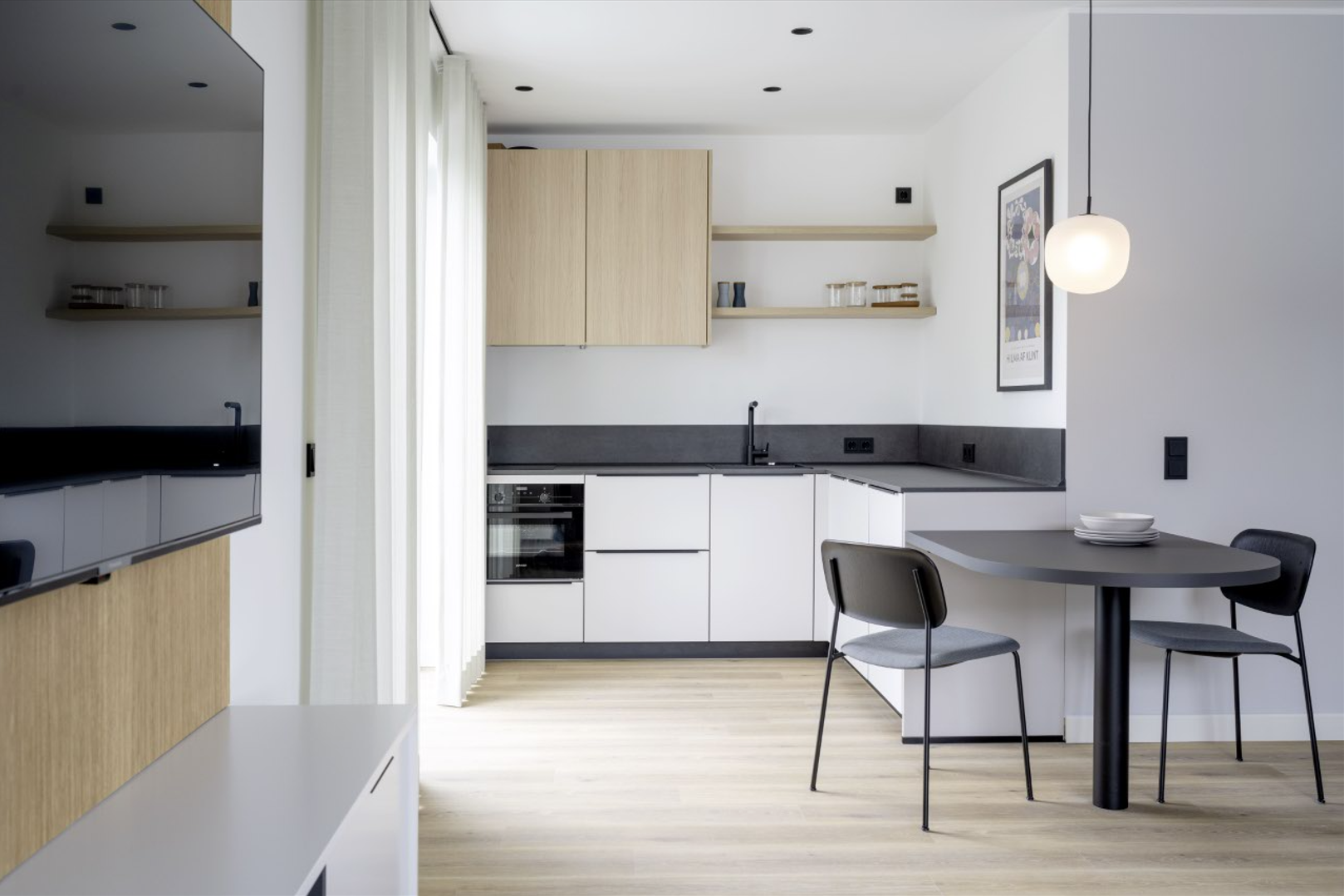 To meet the diverse needs of guests, two apartment sizes were developed: more compact units for shorter stays and more spacious apartments offering more space and comfort for longer stays. Both variants feature high-quality furnishings, a clear design language, and exclusive details.