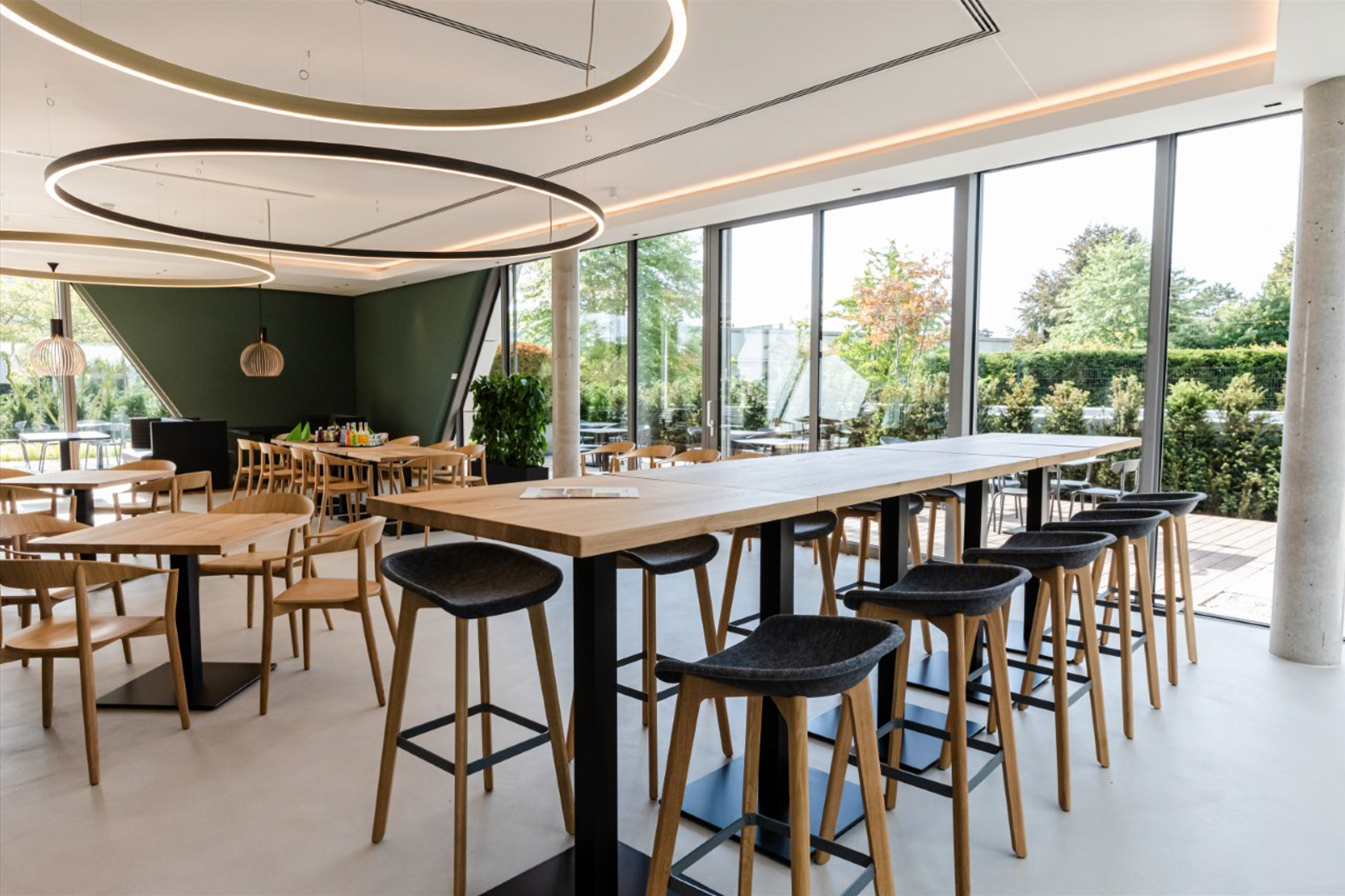 When planning the heroal canteen, we placed great emphasis on a harmonious combination of functionality and atmosphere. We focused on conscious zoning in the design, allowing employees to relax in both high and low seating.