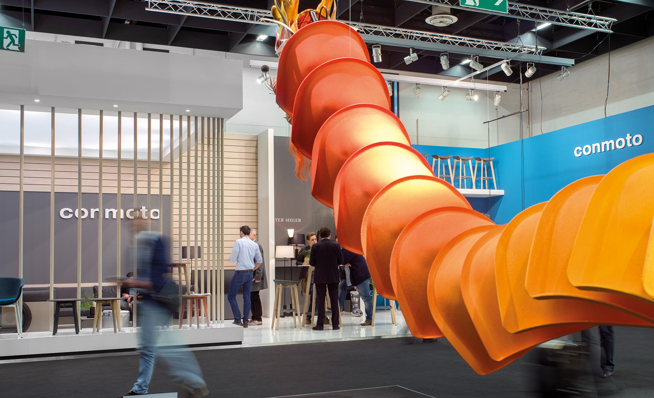 Werner Aisslinger's "Chairman" chair family, further developed for conmoto, was exhibited at the imm cologne as part of the "Stylepark Featured Editions." The team used the special space to create a special presentation of the product in a context removed from everyday life: As a Chinese dragon, the "Chairman" chair shell became the set design and stage setting.