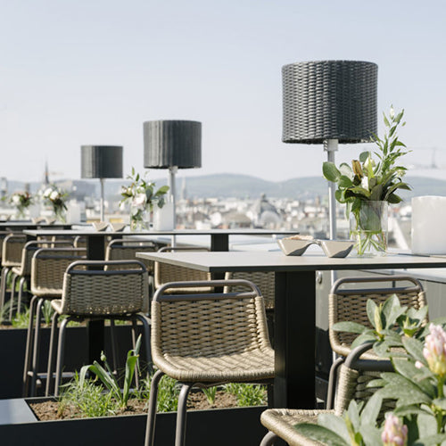 One of Vienna's most beautiful views now also has one of its most beautiful rooftop bars: From the initial design and 3D visualizations to lighting, planting, and installation, we accompanied the Ritz-Carlton from A to Z. It had to be bright and durable. In addition to a selection from the conmoto.home range, the result also includes several custom designs that we developed specifically for this special location.