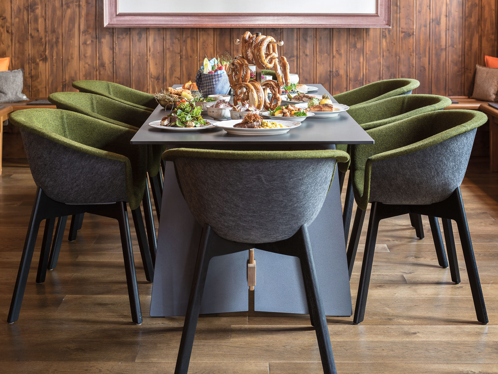 The interior was crying out for a new design. It needed to be convivial and comfortable. What screams conviviality more than benches? We're delighted that our TENSION table and bench series found its place in the restaurant. At the bar, we're using our RIVA bar stools.