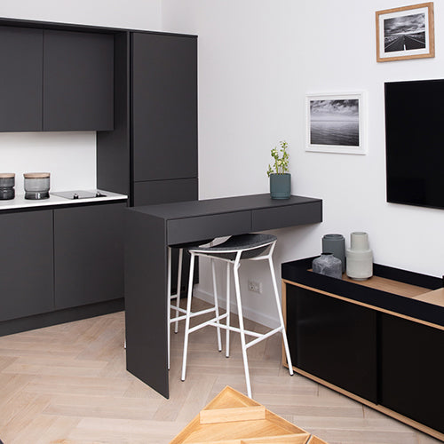 Use this text toFor our client, TU 17 in Berlin, we were commissioned to plan and realize the interiors of four apartments using our furniture. With an included fitted kitchen, a bar area, and practical room dividers, every living space was utilized optimally.