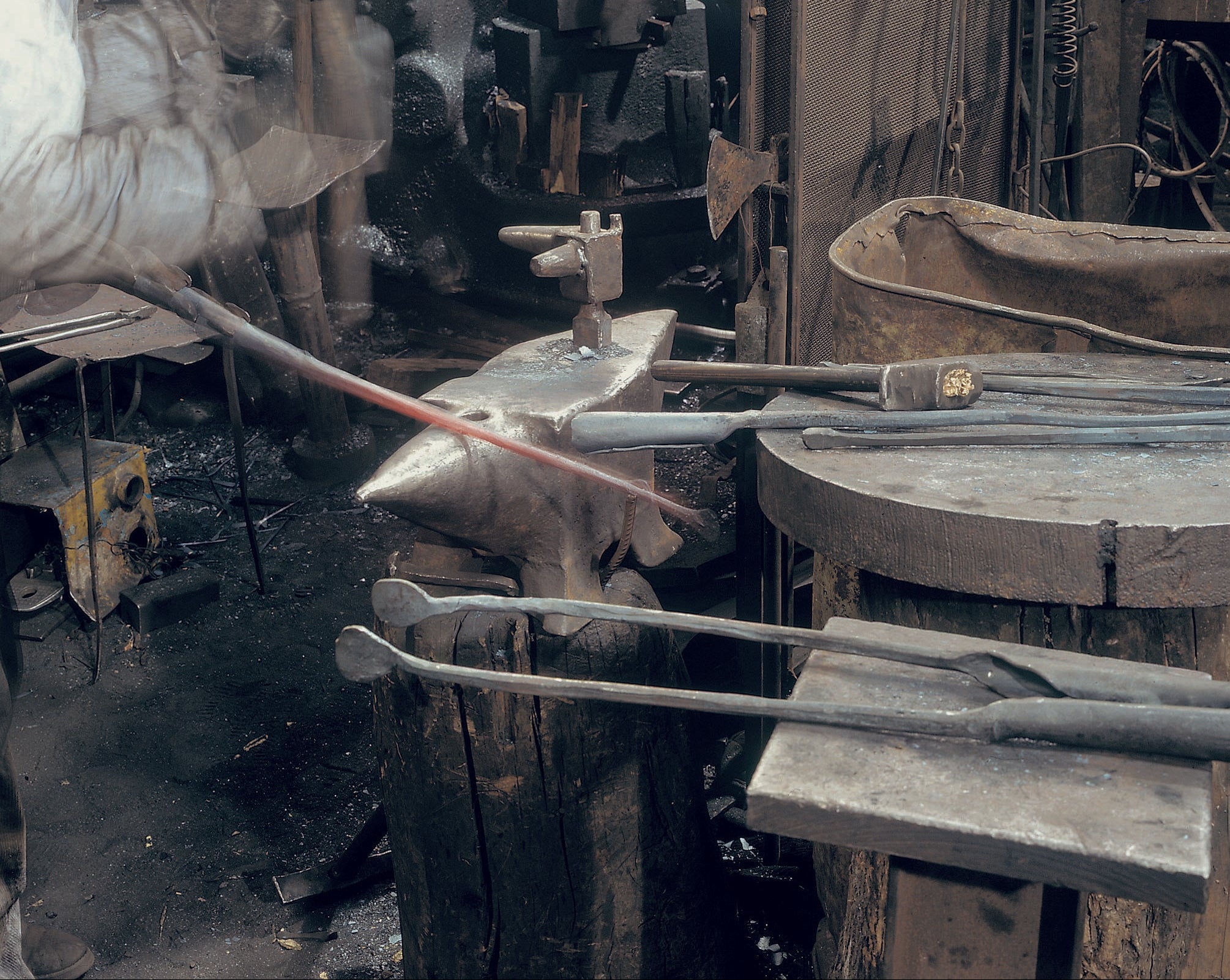 Roh. Ursprünglich. Unverwechselbar. Das Kaminbesteck A FERRO e FUOCO wird in traditioneller Handarbeit aus recyceltem Eisen geschmiedet – jedes Stück ist ein Unikat. Seine Oberfläche trägt die Spuren des Feuers, sein Charakter erzählt von echter Schmiedekunst.